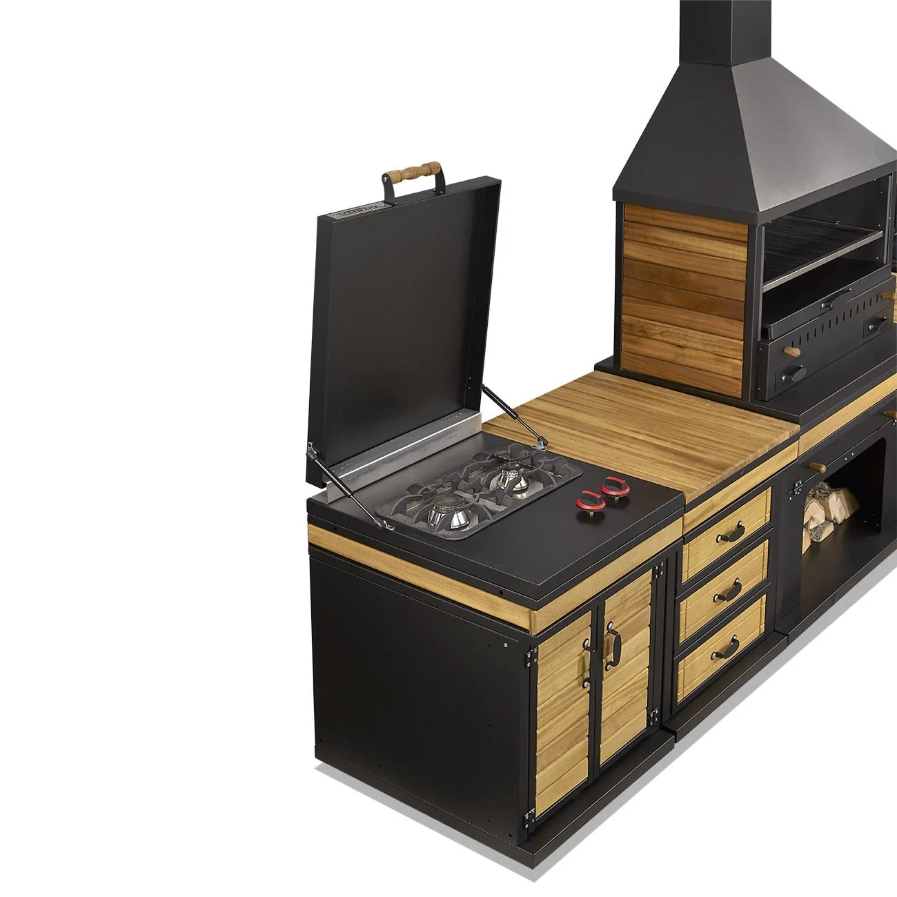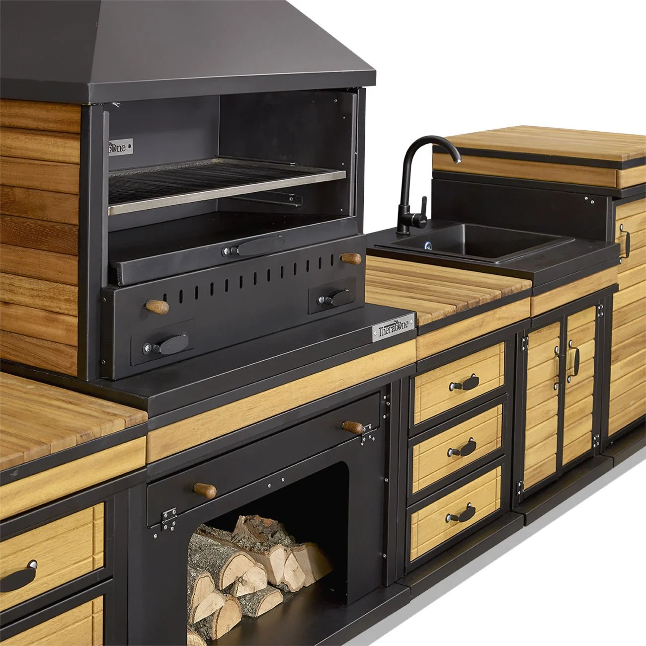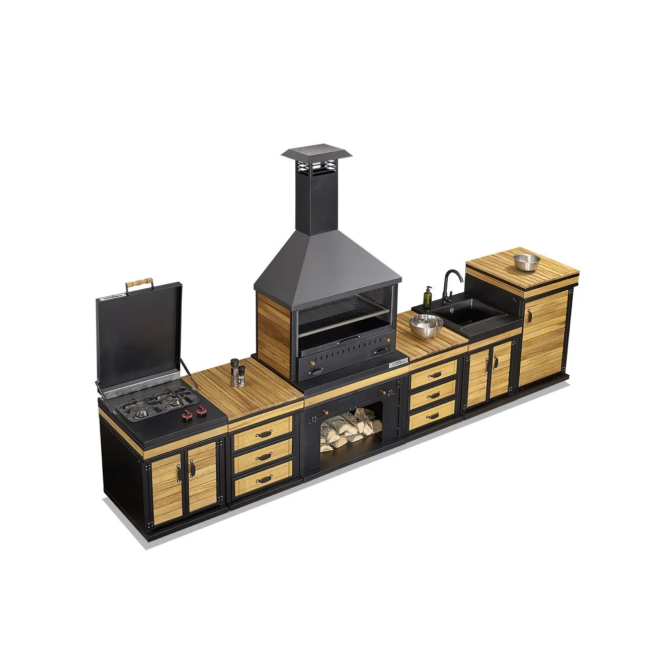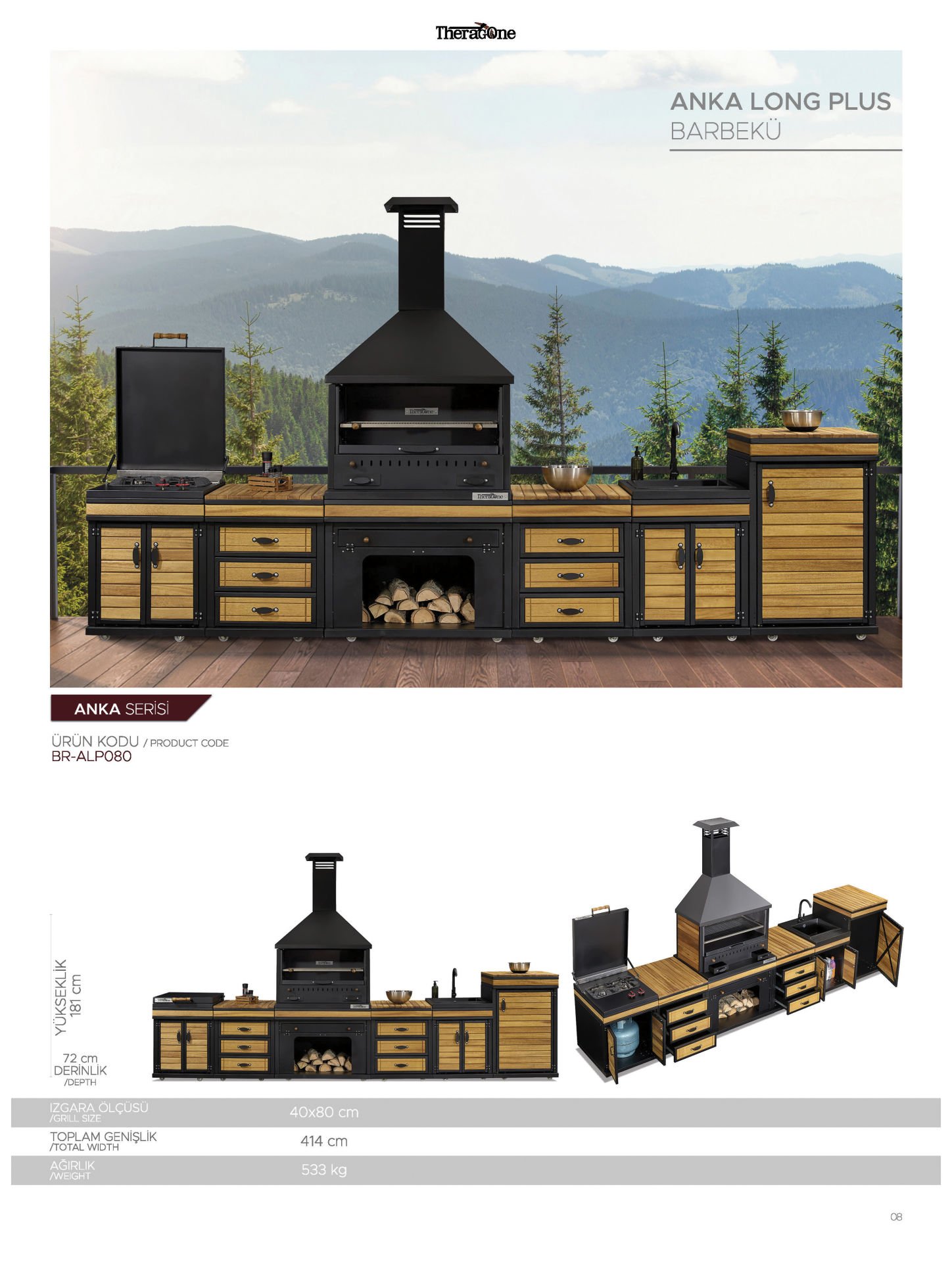 Muhteşem bir tasarım, maharetli ellerle buluştuğunda ortaya çıkan tarifsiz lezzet ve etin ateşle sağladığı eşsiz uyum… Sevdiklerinizle beraber yapacağınız tadına doyulmaz bir mangal keyfiyle, unutulmaz anılar biriktirin.Sipariş verilen ürünleriniz en geç 15 gün içerisinde özenle hazırlanır ve sevki gerçekleştirilir.Sorularınız ve önerileriniz için 0 850 399 22 88 numaralı telefonumuzdan bizlere ulaşabilirsiniz.-Ürün içeriği;ocak, 2 adet çekmece, Anka barbekü 40*80, lavabo ve büyük dolap modülü ile beraber 6 modüldenoluşmuştur,-Sayfanın alt bölümünde ki ürünün teknik çizim bölümünden tüm detay ölçülerine ulaşabilirsiniz,-Ürünümüz farklı kalınlıklardaki metal saclardan imal edilmiştir,-Ürünümüzün içerisinde 60 cm uzunluğunda 1 adet bacası beraberinde gelmektedir,-Ürünün odunluk bölümünde ızgaralarınızı saklayabileceğiniz kapaklı bir bölmesi mevcuttur,-Yanma bölümü ve iç hazneye ısıya dayanıklı yanmaz boya, dış bölüme ortam şartlarına dayanıklı boya uygulanmıştır,-İç haznenin tümüne özel ısı yalıtım malzemesi uygulanmıştır,-İç haznede ızgaranın yüksekliği 3 kademeli ızgara rafı bulunmaktadır,-İç haznenin tabanı ısıyı uzun süre koruyabilmek için ateş tuğlası ile örülmüştür,-Ürünümüzün içerisinde 1 adet standart çelik ızgarası hediye gelmektedir,-Estetik ve dayanım açısından yan kısımlarda ve tezgah üzerinde dış ortamlara dayanıklı iroko ağacı kullanılmıştır,-Bahçenizin, terasınızın istediğiniz yerinde kullanılabilmesi amacı ile tekerlekli olarak tasarlanmış olup güvenlik açısından stoplu tekerlek kullanılmıştır. Tekerleklerin yanında ayrıca yükseklik ayarlı ayakları mevcuttur.Ürün Opsiyonları-Kullanım alanınıza uygun olarak baca uzunluğunu ürün sayfasının alt kısmında bulunan aksesuarlar bölümünden tercih edebilirsiniz.-Izgara seçeneklerimiz arasından kullanımınıza en uygun olanı ürün sayfasının alt kısmında bulunan aksesuarlar bölümünden tercih edebilirsiniz.-Ürünümüzü ağır kış şartlarından korumak ve kullanım ömrünü uzatabilmek adına özel olarak üretilmiş brandasını ürün sayfasının alt kısmında bulunan aksesuarlar bölümünden tercih edebilirsiniz.Kullanım Tavsiyeleri-Barbekü ve modülleri teknik çizimde de belirtildiği gibi yan yana konulup birleştirme noktalarından beraberinde gönderilen bağlantı parçaları ( civata, somun) ile bileştirilmelidir.-Barbekünüzün yakma işlemi sırasında yanma haznesinin haddinden fazla doldurulmaması, ateşin ızgara alanının orta kısmında yakılması ısının doğru yayılması ve pişirme performansını arttıracağından tavsiye edilmektedir.-Izgara bölümü ham çelikten imal edildiği için kullanım öncesi ve sonrası yüzey temizliğinin su ile değil yağ veya soğan ile yapılması tavsiye edilir.-Barbekünüzün ahşap bölümleri iroko ağacından imal edildiğinden yılda 2 kez yağlanması kullanım ömrünü uzatacağından tavsiye edilir.Garanti Koşulları-Garanti süresi, teslim tarihi ile 1(bir) yıl olup, bu süre zarfında kullanım koşullarına uygun hallerde ilgili malzeme ve teknik destek ücretsiz olarak müşteriye sağlanacaktır.-Kullanım tavsiyeleri dışında kullanımda oluşan arıza durumlarından firmamız sorumlu değildir