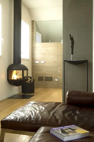 Kavisli ısıya dayanıklı geniş pencereler ateşi 180 derecelik açıyla seyretmenizi sağlar.63 cm çaplı cor-ten çelikten 2.5 mm kalınlıkta ağırlık 42 kg.Baca boruları 273 mm lik çapa sahip.Görünür düşey baca borusu ve arka duman çıkışı seçenekleri bulunmaktadır.Şömine açılır veya kapanır kapı ve bütünleşmiş sıcak-hava reküperatörü ile çalışmaktadır. Baca borusunun uzunluğu ve diğer adaptasyonlar ihtiyaçlara göre üretilmiştir.