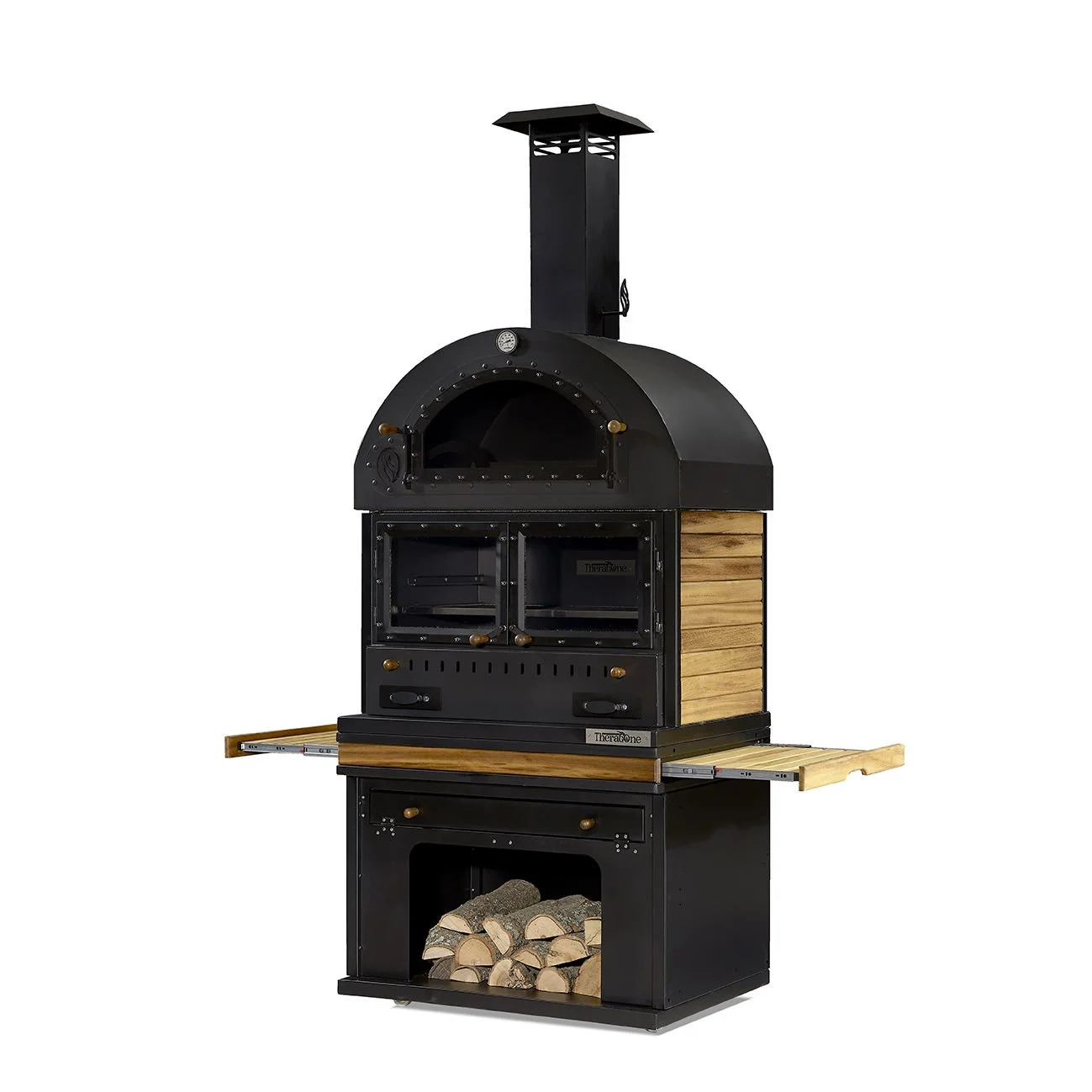 Muhteşem bir tasarım, maharetli ellerle buluştuğunda ortaya çıkan tarifsiz lezzet ve etin ateşle sağladığı eşsiz uyum… Sevdiklerinizle beraber yapacağınız tadına doyulmaz bir mangal keyfiyle, unutulmaz anılar biriktirin.Sipariş verilen ürünleriniz en geç 15 gün içerisinde özenle hazırlanır ve sevki gerçekleştirilir.Sorularınız ve önerileriniz için 0 850 399 22 88 numaralı telefonumuzdan bizlere ulaşabilirsiniz.-Sayfanın alt bölümünde ki ürünün teknik çizim bölümünden tüm detay ölçülerine ulaşabilirsiniz,-Ürünümüz farklı kalınlıklardaki metal saclardan imal edilmiştir,-Fırın kısmı ısının maksimum verimde kullanılabilmesi ve yalıtımlı tasarlanmıştır,-Fırın kısmının tabanı sök tak özellikli özel pişirme taşı,-Fırın ve iç haznede özel ısıya ve şok etkisine dayanıklı cam uygulanmıştır,-Fırın kısmındaki ısıyı görebilmeniz için üzerine termometre yerleştirilmiştir,-Ürünümüzün içerisinde 60 cm uzunluğunda 1 adet bacası beraberinde gelmektedir,-Ürünün odunluk bölümünde ızgaralarınızı saklayabileceğiniz kapaklı bir bölmesi mevcuttur,-Yanma bölümü ve iç hazneye ısıya dayanıklı yanmaz boya, dış bölüme ortam şartlarına dayanıklı boya uygulanmıştır,-İç haznenin tümüne özel ısı yalıtım malzemesi uygulanmıştır,-İç haznede ızgaranın yüksekliği 3 kademeli ızgara rafı bulunmaktadır,-İç haznenin tabanı ısıyı uzun süre koruyabilmek için ateş tuğlası ile örülmüştür,-Ürünümüzün içerisinde 1 adet standart çelik ızgarası hediye gelmektedir,-Estetik ve dayanım açısından yan kısımlarda ve yana açılan kollar üzerinde dış ortamlara dayanıklı iroko ağacı kullanılmıştır,-Bahçenizin, terasınızın istediğiniz yerinde kullanılabilmesi amacı ile tekerlekli olarak tasarlanmış olup güvenlik açısından stoplu tekerlek kullanılmıştır. Tekerleklerin yanında ayrıca yükseklik ayarlı ayakları mevcuttur.Ürün Opsiyonları-Kullanım alanınıza uygun olarak baca uzunluğunu ürün sayfasının alt kısmında bulunan aksesuarlar bölümünden tercih edebilirsiniz.-Izgara seçeneklerimiz arasından kullanımınıza en uygun olanı ürün sayfasının alt kısmında bulunan aksesuarlar bölümünden tercih edebilirsiniz.-Ürünümüzü ağır kış şartlarından korumak ve kullanım ömrünü uzatabilmek adına özel olarak üretilmiş brandasını ürün sayfasının alt kısmında bulunan aksesuarlar bölümünden tercih edebilirsiniz.Kullanım Tavsiyeleri-Barbekünüzün yakma işlemi sırasında yanma haznesinin haddinden fazla doldurulmaması, ateşin ızgara alanının orta kısmında yakılması ısının doğru yayılması ve pişirme performansını arttıracağından tavsiye edilmektedir. Fırın kullanımında max. 300 derece ısı yüksekliği tavsiye edilmektedir.-Izgara bölümü ham çelikten imal edildiği için kullanım öncesi ve sonrası yüzey temizliğinin su ile değil yağ veya soğan ile yapılması tavsiye edilir.-Barbekünüzün ahşap bölümleri iroko ağacından imal edildiğinden yılda 2 kez yağlanması kullanım ömrünü uzatacağından tavsiye edilir.Garanti Koşulları-Garanti süresi, teslim tarihi ile 1(bir) yıl olup, bu süre zarfında kullanım koşullarına uygun hallerde ilgili malzeme ve teknik destek ücretsiz olarak müşteriye sağlanacaktır.-Kullanım tavsiyeleri dışında kullanımda oluşan arıza durumlarından firmamız sorumlu değildir.