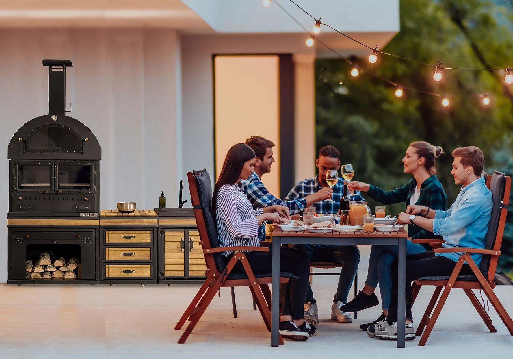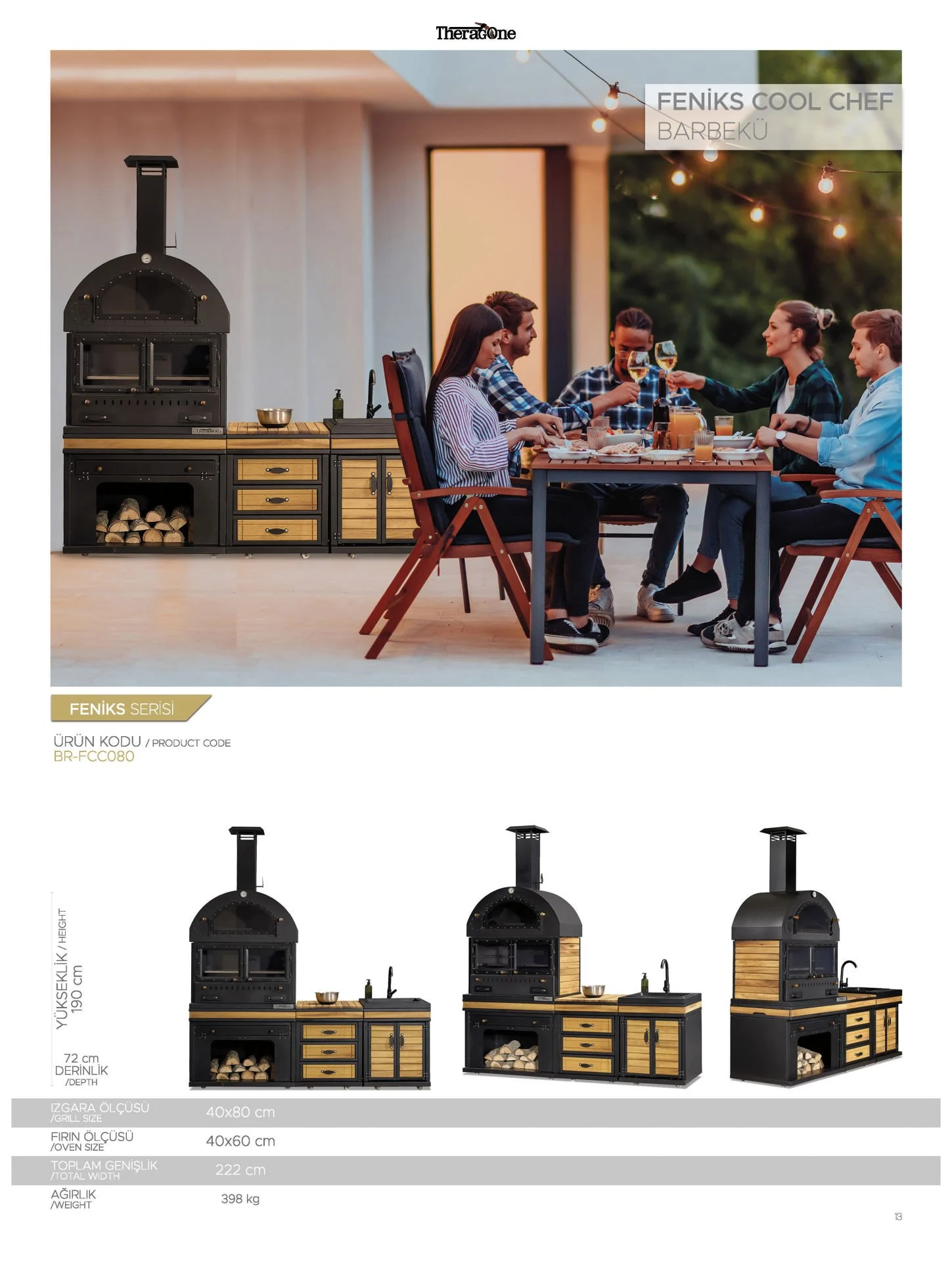 Şık tasarım sevenlere özel; hem yenilikçi hem elegant görünüme sahip Feniks Cool Chef Barbekü! Sevdiklerinize hazırlayacağınız tadına doyulmaz lezzetlerle, sıcacık anılar biriktirin.Sipariş verilen ürünleriniz en geç 15 gün içerisinde özenle hazırlanır ve sevki gerçekleştirilir.Sorularınız ve önerileriniz için 0 850 399 22 88 numaralı telefonumuzdan bizlere ulaşabilirsiniz.-Ürün içeriği;feniks barbekü, çekmece modülü ve lavabo modülü ile beraber 3 modüldenoluşmuştur,-Sayfanın alt bölümünde ki ürünün teknik çizim bölümünden tüm detay ölçülerine ulaşabilirsiniz,-Ürünümüz farklı kalınlıklardaki metal saclardan imal edilmiştir,-Fırın kısmı ısının maksimum verimde kullanılabilmesi ve yalıtımlı tasarlanmıştır,-Fırın kısmının tabanı sök tak özellikli özel pişirme taşı,-Fırın ve iç haznede özel ısıya ve şok etkisine dayanıklı cam uygulanmıştır,-Fırın kısmındaki ısıyı görebilmeniz için üzerine termometre yerleştirilmiştir,-Ürünümüzün içerisinde 60 cm uzunluğunda 1 adet bacası beraberinde gelmektedir,-Ürünün odunluk bölümünde ızgaralarınızı saklayabileceğiniz kapaklı bir bölmesi mevcuttur,-Yanma bölümü ve iç hazneye ısıya dayanıklı yanmaz boya, dış bölüme ortam şartlarına dayanıklı boya uygulanmıştır,-İç haznenin tümüne özel ısı yalıtım malzemesi uygulanmıştır,-İç haznede ızgaranın yüksekliği 3 kademeli ızgara rafı bulunmaktadır,-İç haznenin tabanı ısıyı uzun süre koruyabilmek için ateş tuğlası ile örülmüştür,-Ürünümüzün içerisinde 1 adet standart çelik ızgarası hediye gelmektedir,-Estetik ve dayanım açısından yan kısımlarda ve tezgah üzerinde dış ortamlara dayanıklı iroko ağacı kullanılmıştır,-Bahçenizin, terasınızın istediğiniz yerinde kullanılabilmesi amacı ile tekerlekli olarak tasarlanmış olup güvenlik açısından stoplu tekerlek kullanılmıştır. Tekerleklerin yanında ayrıca yükseklik ayarlı ayakları mevcuttur.Ürün Opsiyonları-Kullanım alanınıza uygun olarak baca uzunluğunu ürün sayfasının alt kısmında bulunan aksesuarlar bölümünden tercih edebilirsiniz.-Izgara seçeneklerimiz arasından kullanımınıza en uygun olanı ürün sayfasının alt kısmında bulunan aksesuarlar bölümünden tercih edebilirsiniz.-Ürünümüzü ağır kış şartlarından korumak ve kullanım ömrünü uzatabilmek adına özel olarak üretilmiş brandasını ürün sayfasının alt kısmında bulunan aksesuarlar bölümünden tercih edebilirsiniz.Kullanım Tavsiyeleri-Barbekü ve modülleri teknik çizimde de belirtildiği gibi yan yana konulup birleştirme noktalarından beraberinde gönderilen bağlantı parçaları ( civata, somun) ile bileştirilmelidir.-Barbekünüzün yakma işlemi sırasında yanma haznesinin haddinden fazla doldurulmaması, ateşin ızgara alanının orta kısmında yakılması ısının doğru yayılması ve pişirme performansını arttıracağından tavsiye edilmektedir. Fırın kullanımında max. 300 derece ısı yüksekliği tavsiye edilmektedir.-Izgara bölümü ham çelikten imal edildiği için kullanım öncesi ve sonrası yüzey temizliğinin su ile değil yağ veya soğan ile yapılması tavsiye edilir.-Barbekünüzün ahşap bölümleri iroko ağacından imal edildiğinden yılda 2 kez yağlanması kullanım ömrünü uzatacağından tavsiye edilir.Garanti Koşulları-Garanti süresi, teslim tarihi ile 1(bir) yıl olup, bu süre zarfında kullanım koşullarına uygun hallerde ilgili malzeme ve teknik destek ücretsiz olarak müşteriye sağlanacaktır.-Kullanım tavsiyeleri dışında kullanımda oluşan arıza durumlarından firmamız sorumlu değildir.