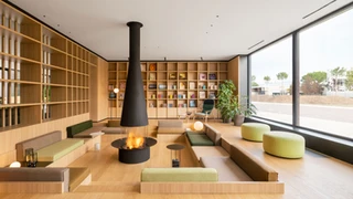 Dairesel kesit cam paneller ile Filiofocus şömine iki versiyon halinde sipariş edilebilir.: ODUNLU veya GAZLI