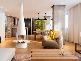 Merkezde konumlandırılabilen ada tipi bir şömine FILIOFOCUS 2000.