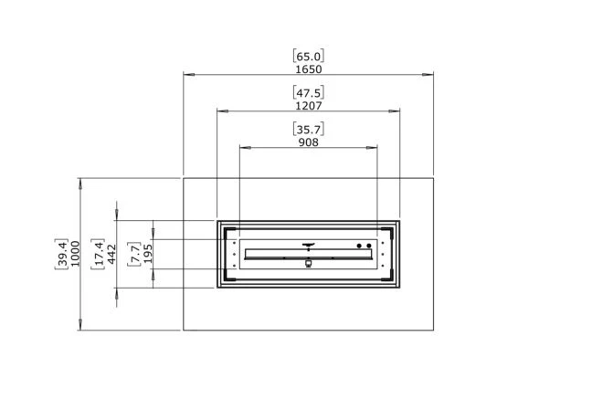 Yakıt: Bioethanol Burner Kit: Our burner kits are in the industry Designed to offer the longest and most efficient burn times. Homogeneous and colorful real flames. Fuel Its capacity 9 L 2.4 Gal Average Heating m2 Min.Used Volume 60m2 646ft2 110m3 3885ft3 Thermal Power Fuel Efficiency 15000 BTU/h 4.4 kW 16 MJ/h 8-13h 9 Litres Technical drawing Weight